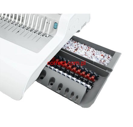 - Ergonomiczna. Specjalna, osobna szuflada do przechowywania grzbietów z opatentowanym systemem mierzenia grubości dokumentów i doboru odpowiedniego grzbietu.