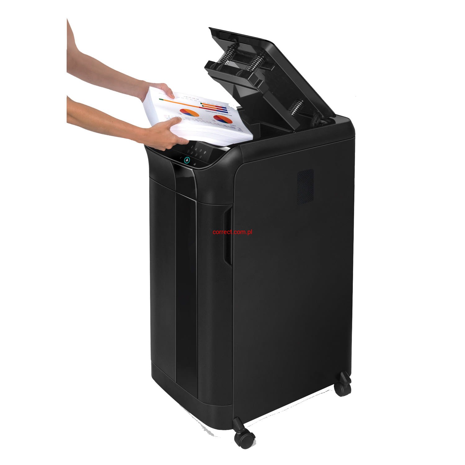 - Bardzo duża wydajność – niszczy automatycznie do 600 kartek w zaledwie 15 minut