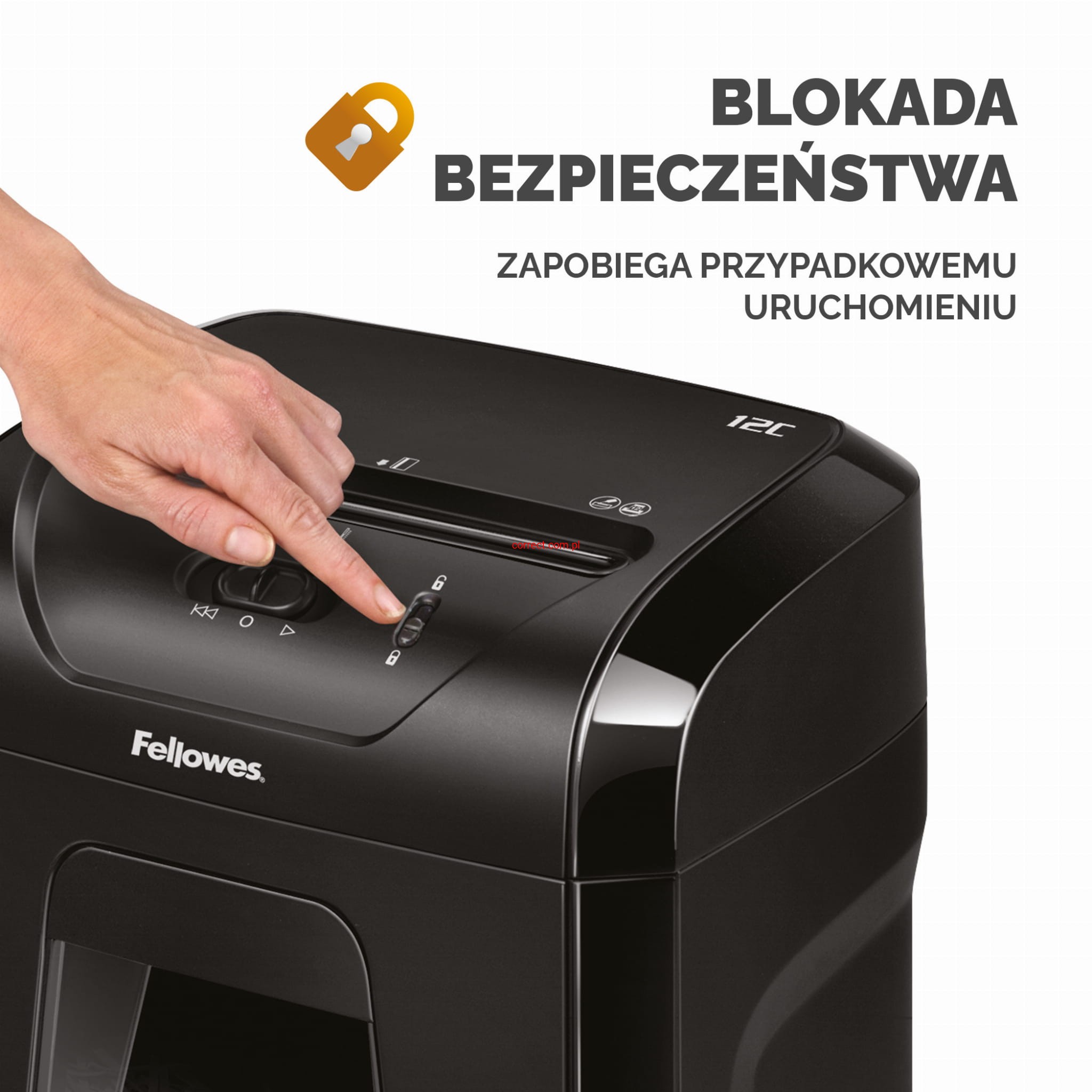 - Niszczy jednorazowo do 12 kartek (70g) na ścinki 4x40 mm, P-4/T-4