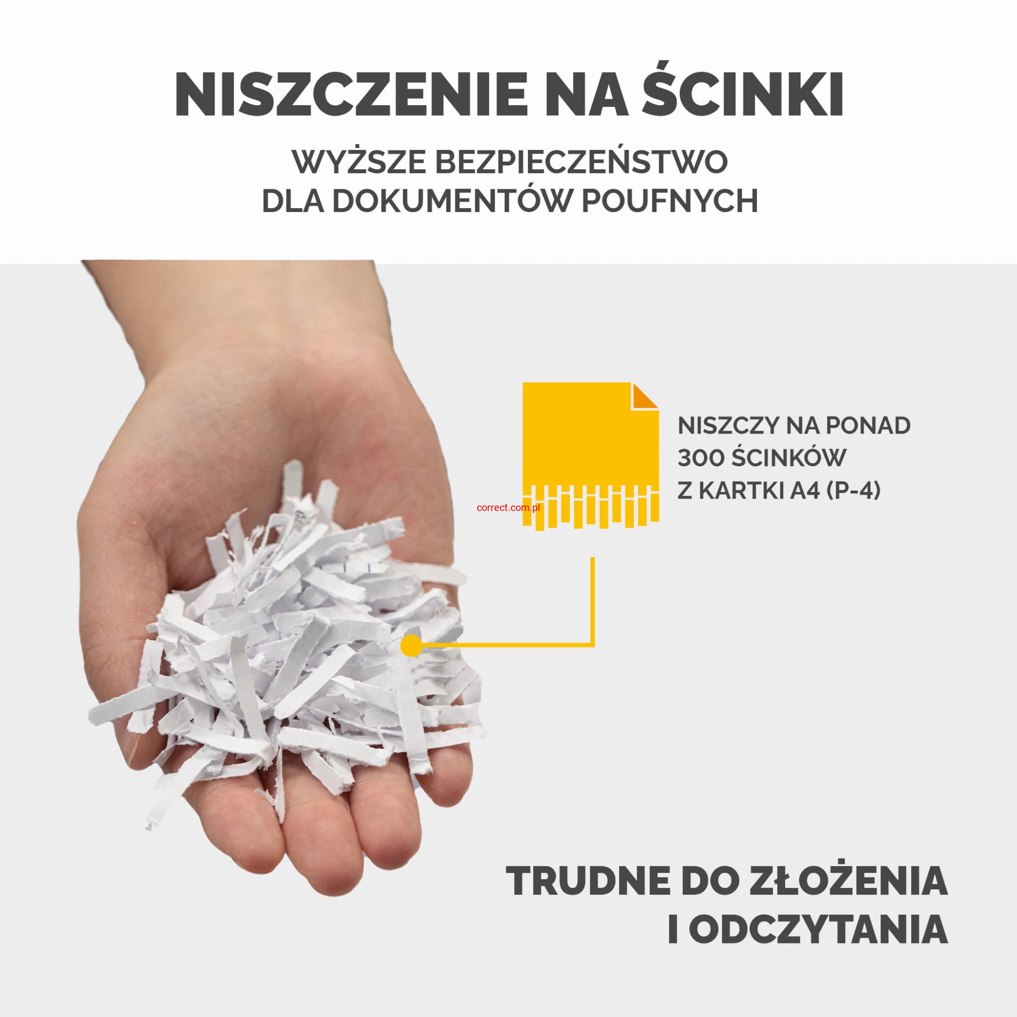 - Cięcie na ścinki zapewnia zwiększony poziom bezpieczeństwa oraz znacznie zmniejsza zapełnienie kosza