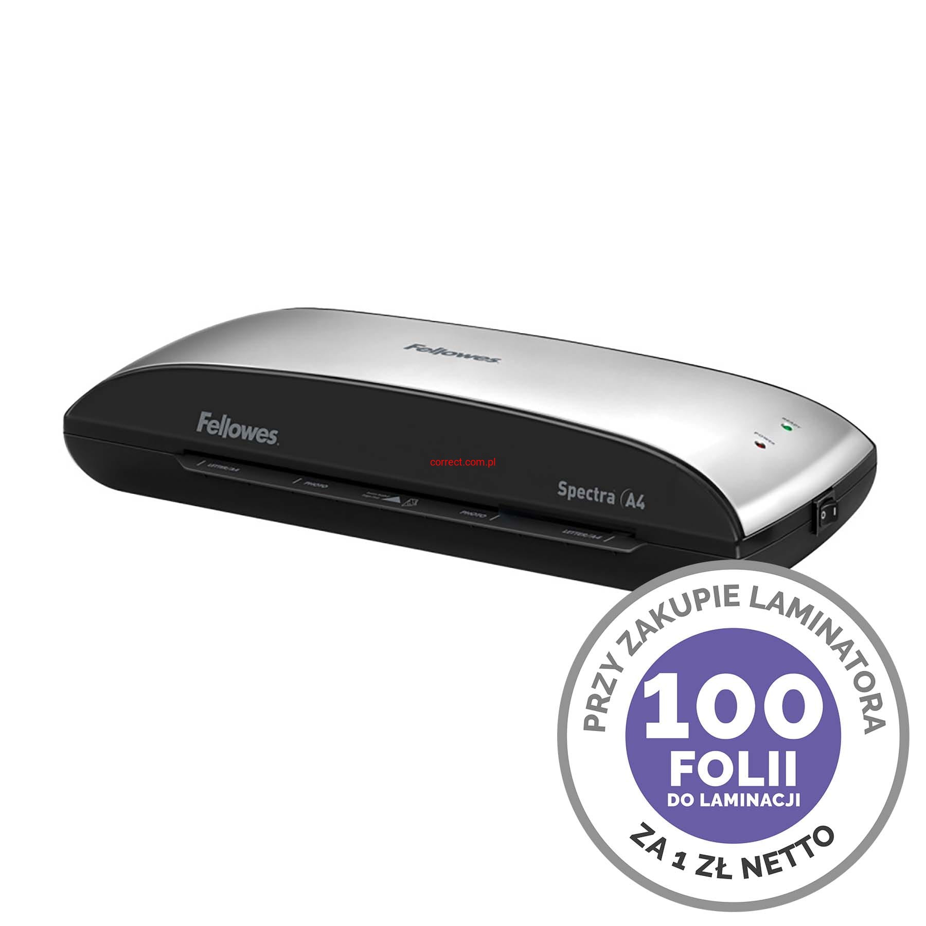 Laminator SPECTRA A4 Fellowes + Folia A4 80 mic za 1 zł netto