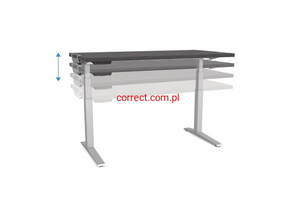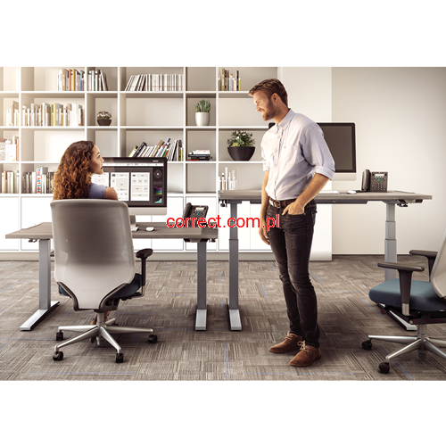 - Dwa osobne siłowniki (w każdej z nóg) zapewniają precyzję ustawienia blatu i biurka.