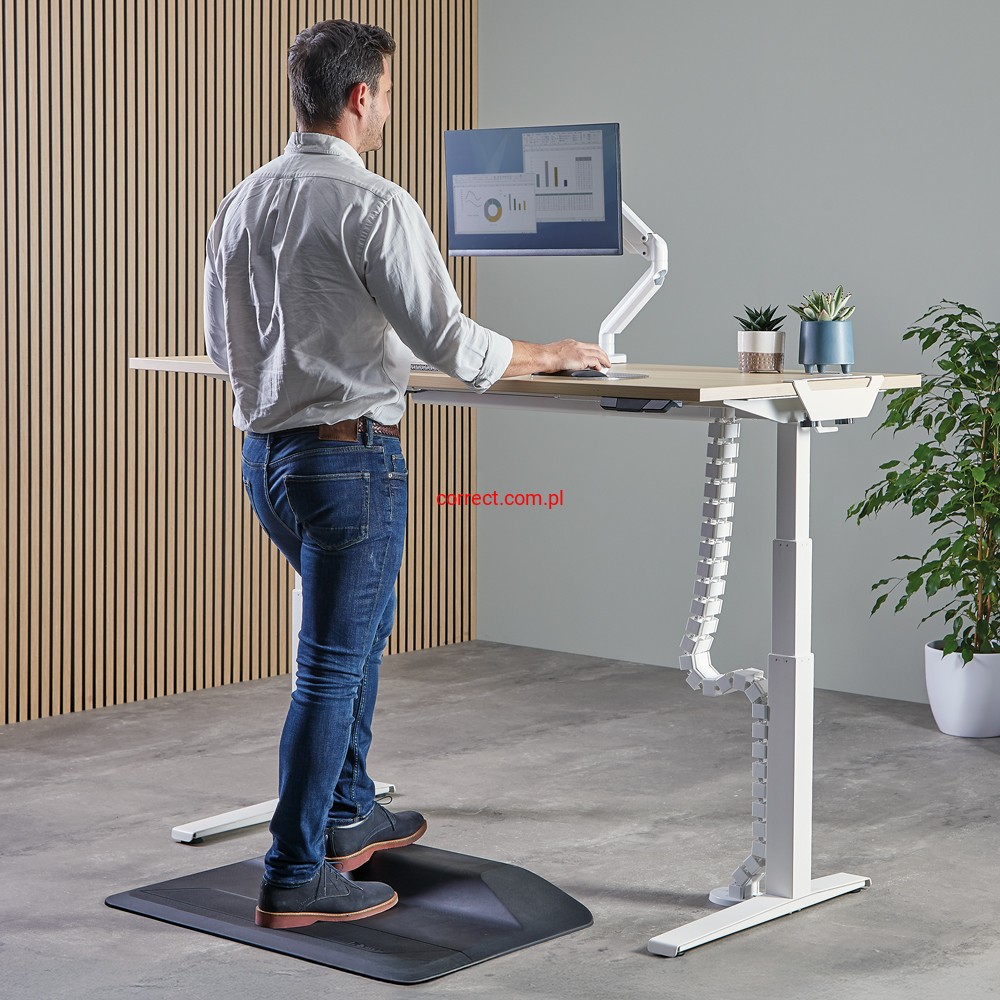 - Elastyczny grzbiet dopasowuje się do biurek z regulacją wysokości (do 130 cm), płynnie dostosowując się do zmian wysokości biurka.