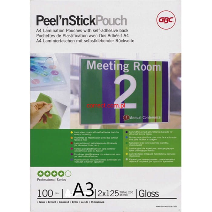 Folia A3 do laminowania SAMOPRZYLEPNA 125 micronów GBC