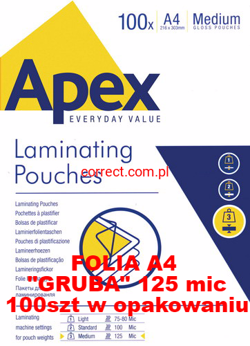 Folia do laminatora A4 125 mic APEX medium SUPER CENA !!!