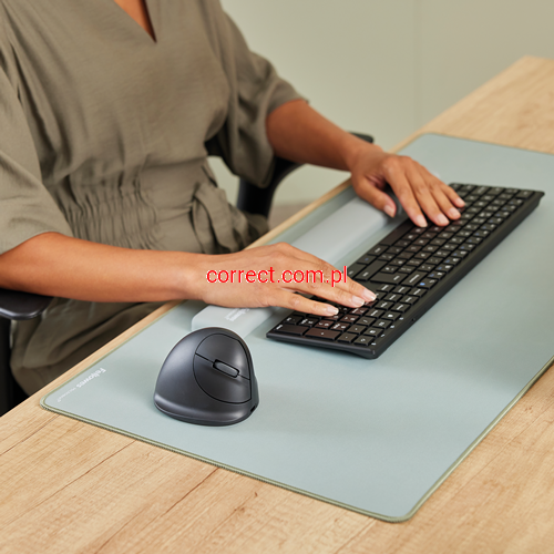 - zapobiega przeciążeniu nadgarstka podczas pracy myszą – konstrukcja z kątem 60° wspiera bardziej naturalną, „uściskową” pozycję dłoni, zmniejszając napięcie w dłoni i przedramieniu
