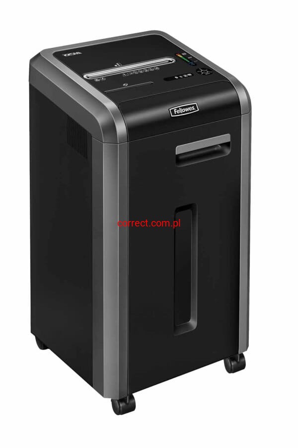 Profesjonalna niszczarka biurowa Fellowes 225 Mi o podwyższonym poziomie zabezpieczenia zniszczonych dokumentów do użytku w biurze dla grupy powyżej 5 osób.