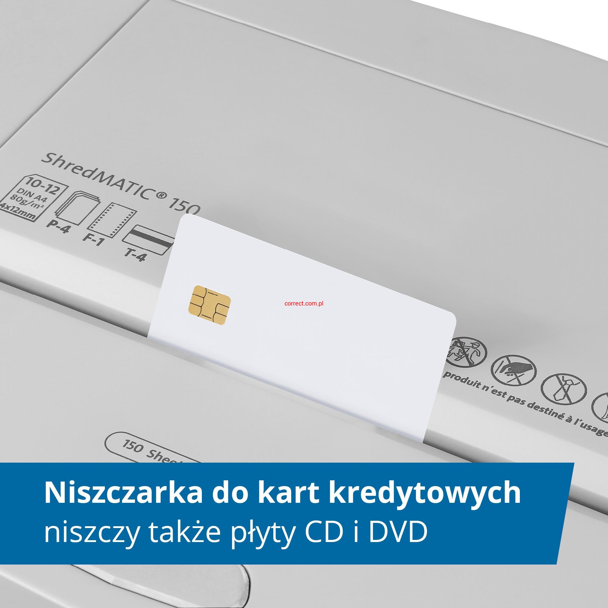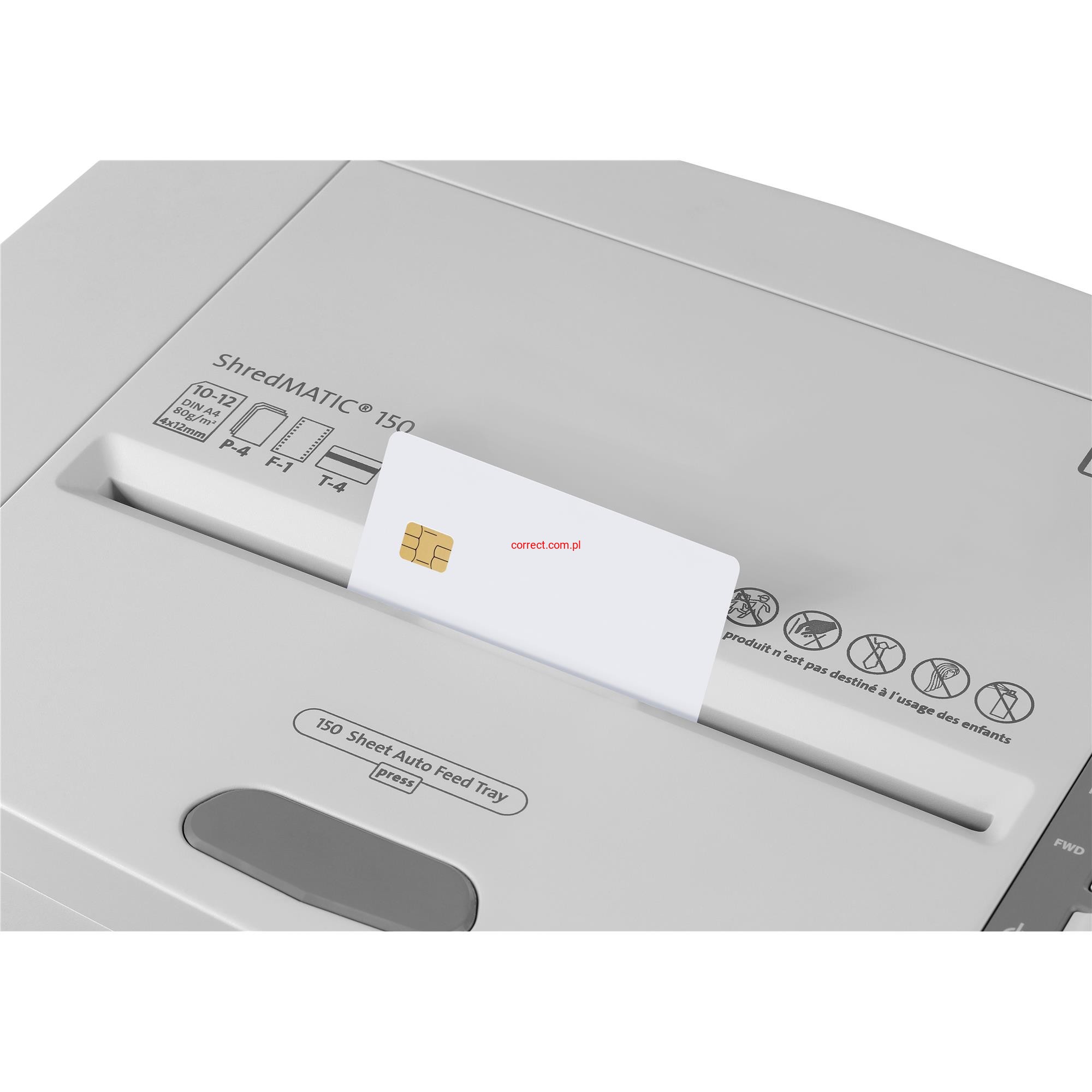 - Funkcja automatycznego podawania papieru umożliwia niszczenie do 150 arkuszy (80 g/m²) przy jednym załadunku