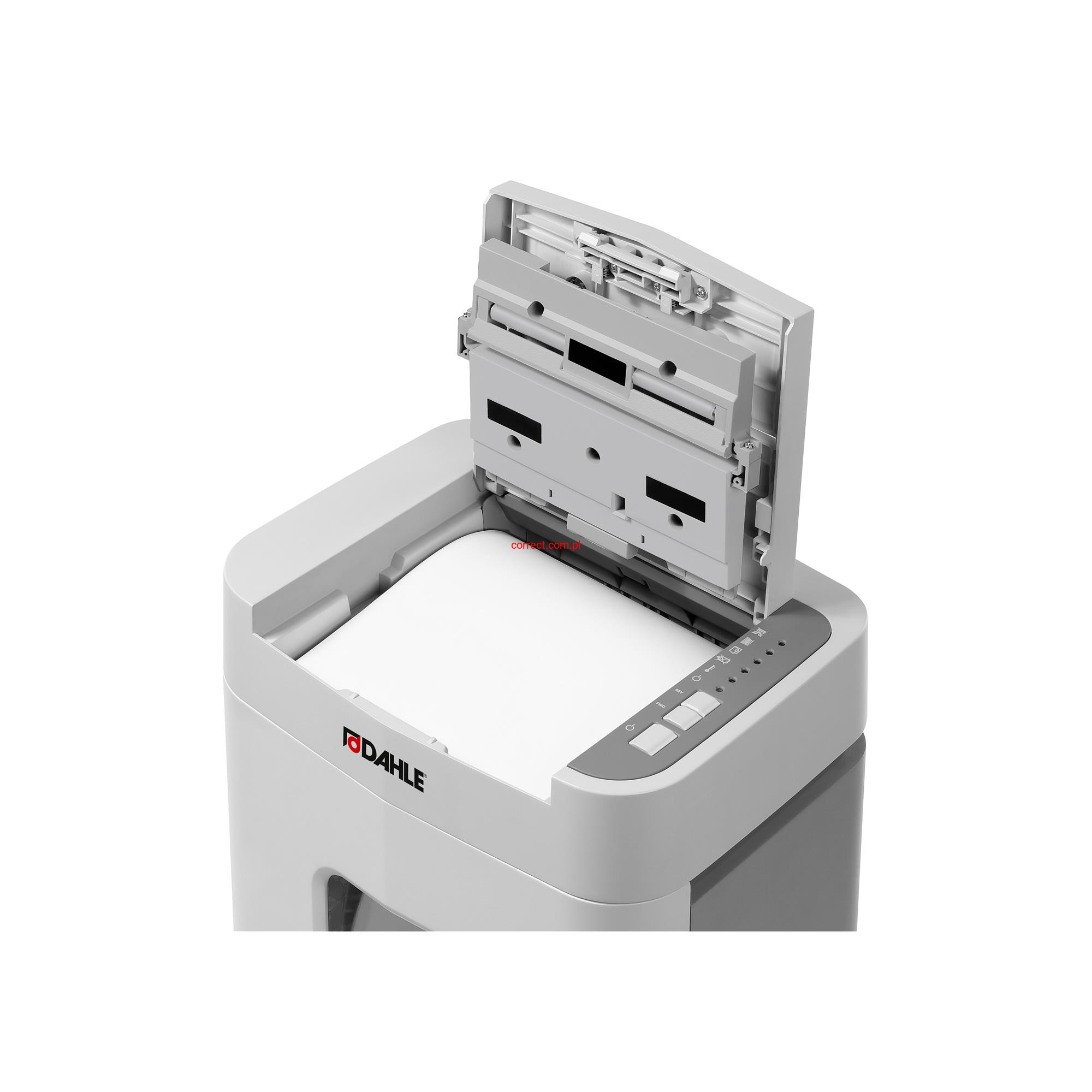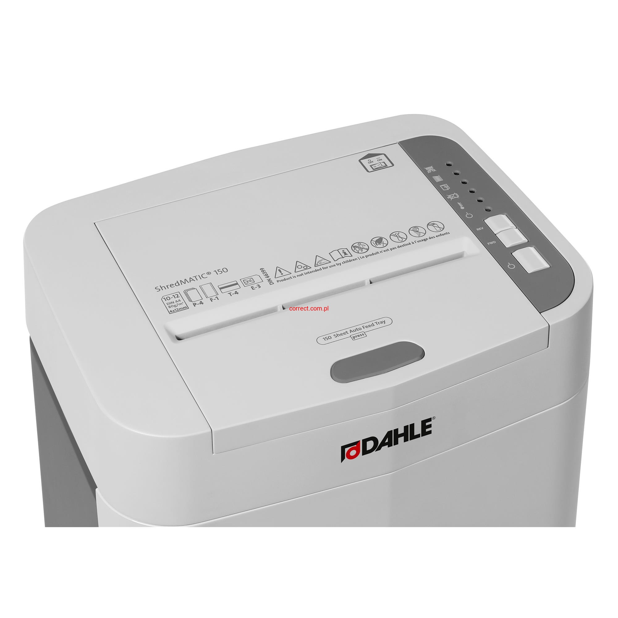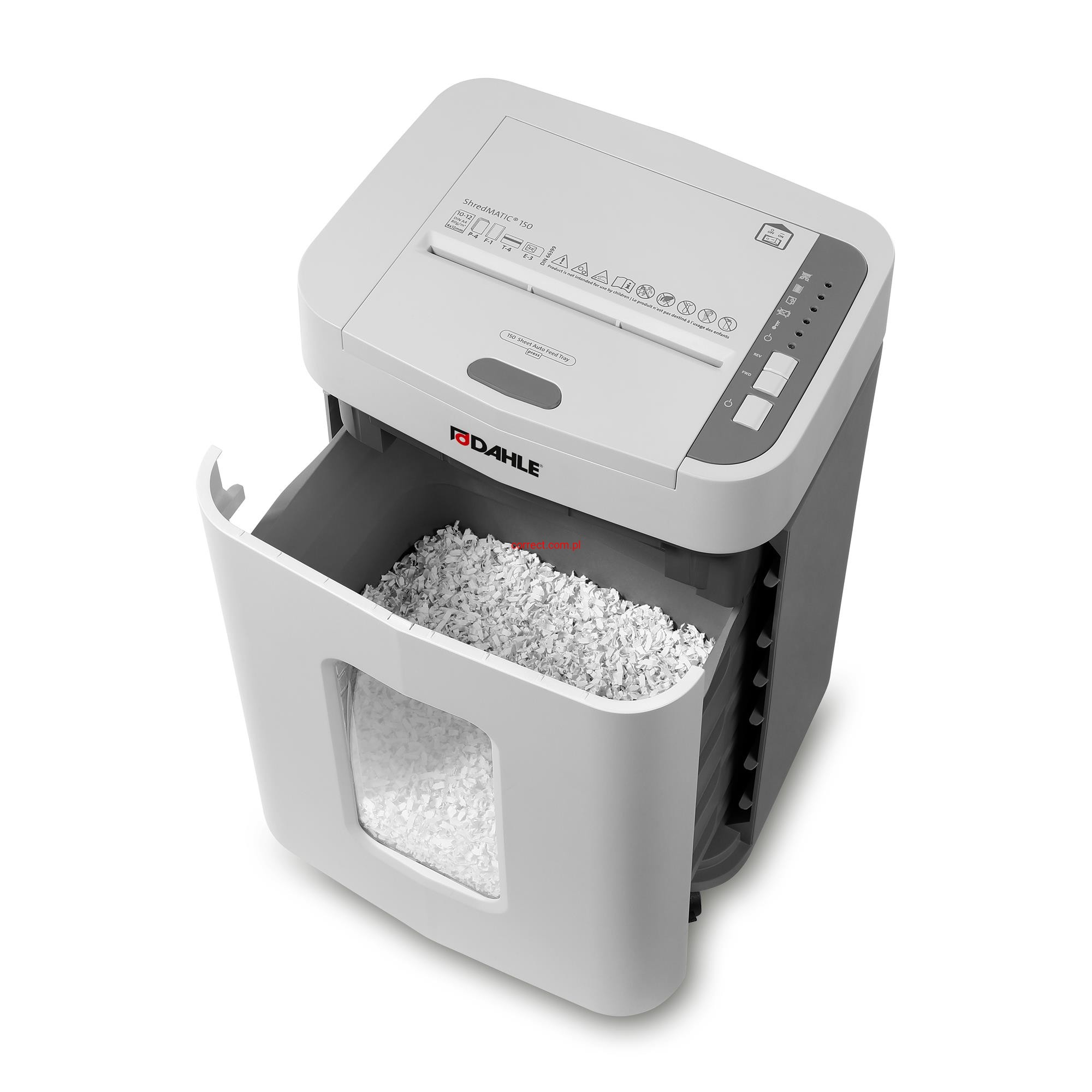 Niszczarka DAHLE Shredmatic 150 to nowoczesne i inteligentne urządzenie do biura, wyposażone w automatyczny podajnik na 150 arkuszy oraz możliwość ręcznego niszczenia 10-12 kartek.