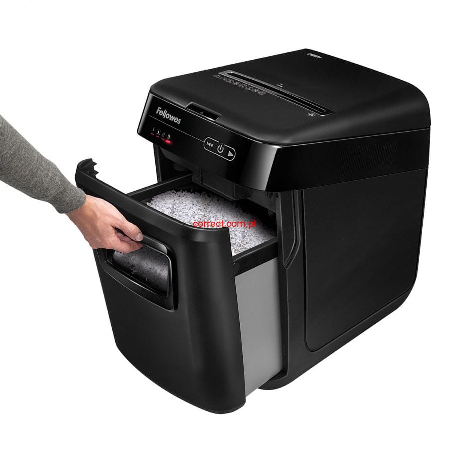 - Brak uciążliwych zacięć dzięki systemowi Auto Reverse - w przypadku zacięcia dokumentów niszczarka Fellowes Automax 200M wstępnie wycofa dokumenty.