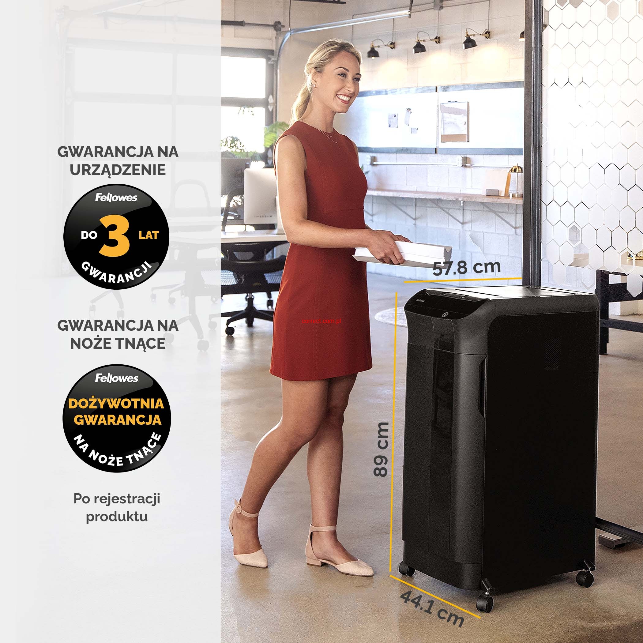 - Bezpieczna – funkcja Smart Lock z blokadą na 4-ro cyfrowy PIN zapobiega otwarciu szuflady podczas niszczenia dokumentów