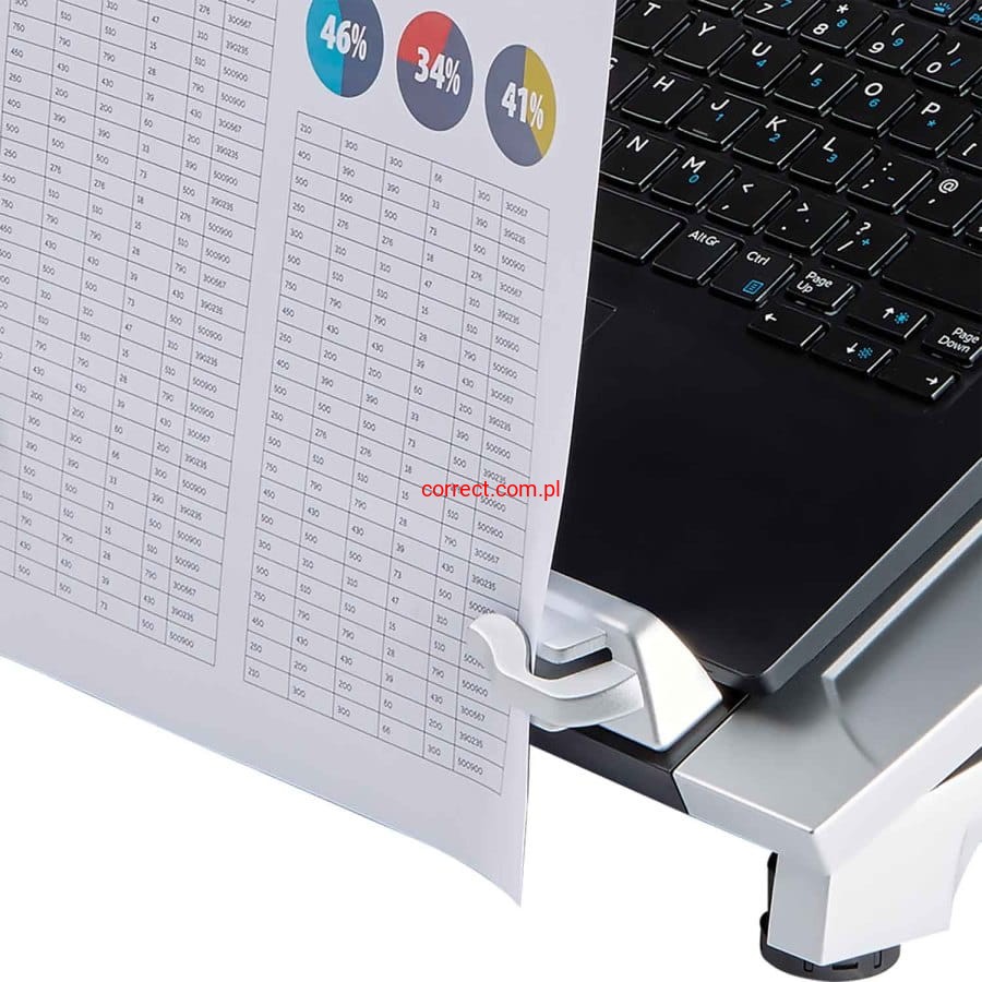 - Klipsy z przodu podstawy pozwalają na korzystanie z dokumentów