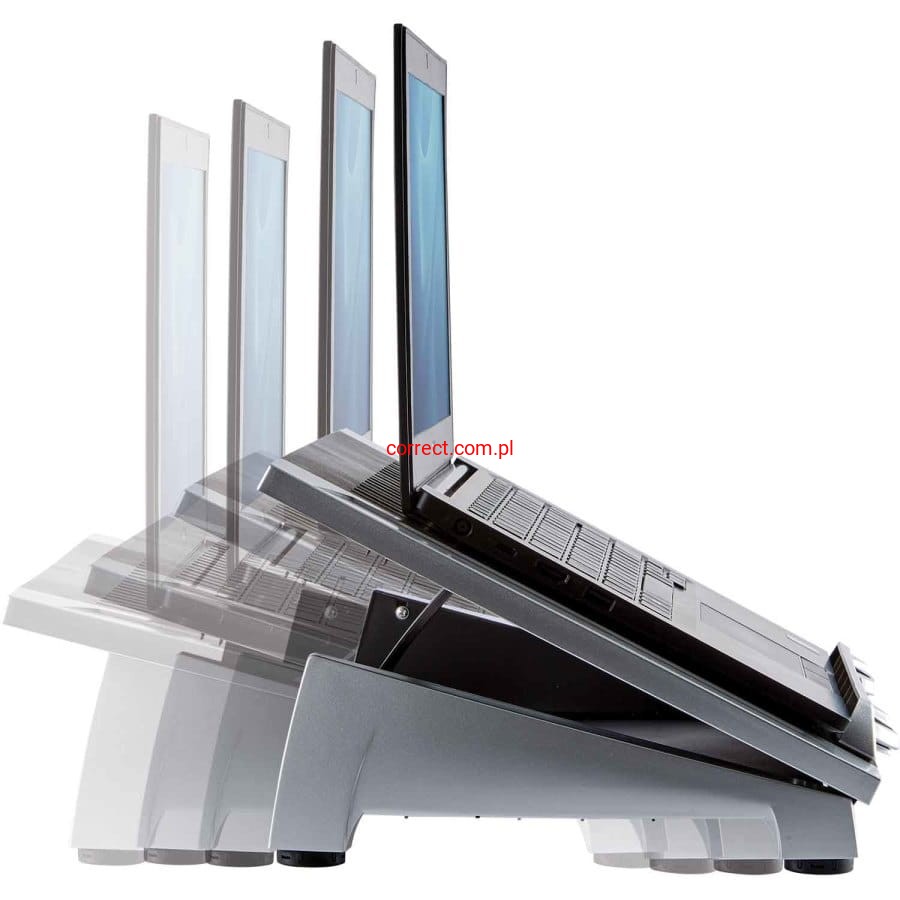 - Stabilizująca przednia krawędź zapobiega zsuwaniu się komputera z podstawki