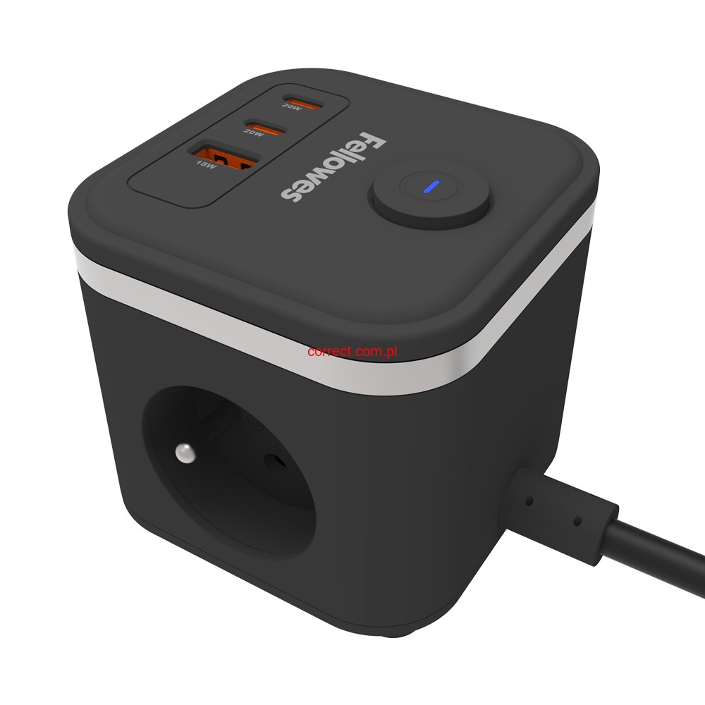 - podłącz wiele urządzeń jednocześnie, dzięki przenośnej, kompaktowej kostce zasilającej
